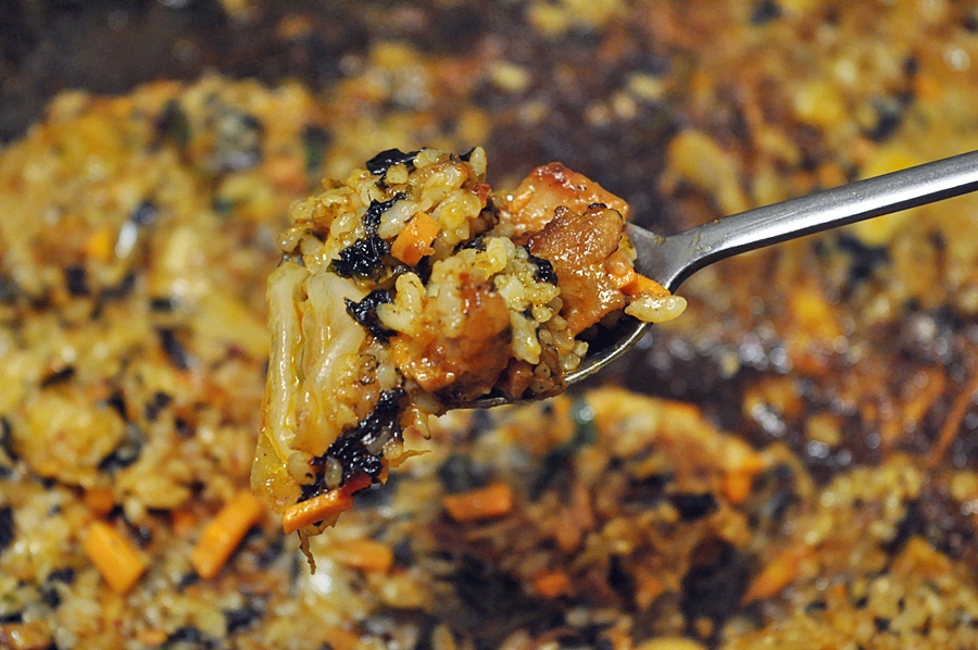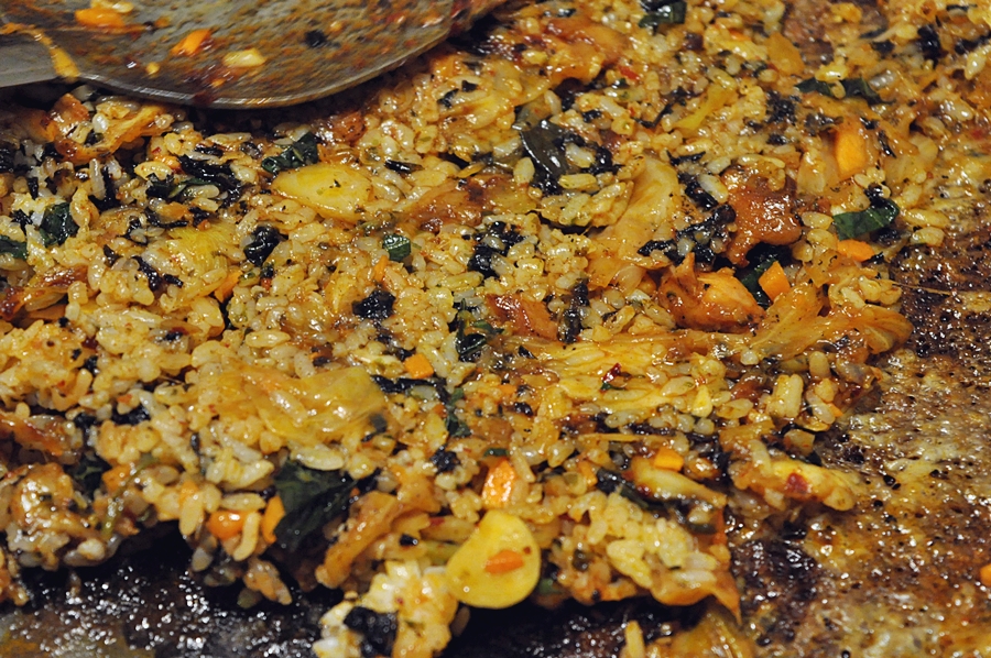 또한, 닭갈비를 다 먹고 난 후 볶음밥을 추가해서 마무리했어요. 공기밥만 먹기에는 아쉬우니까 철판에 볶아 먹는 볶음밥은 필수죠! 볶음밥은 1인분만 주문해도 양이 꽤 많아서 셋이서 나눠 먹어도 충분했어요. 닭갈비 양념이 밥과 잘 어우러져서 정말 맛있었습니다.