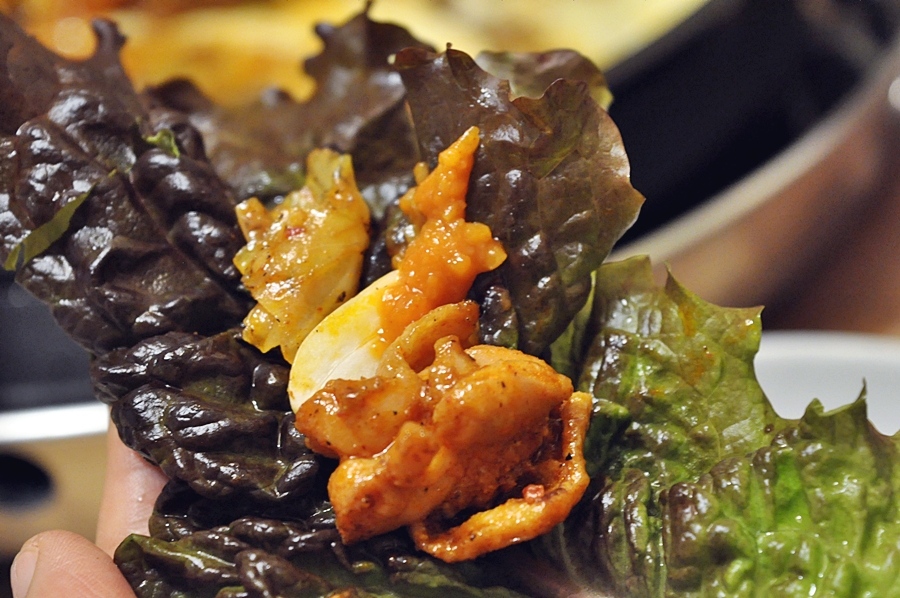 닭갈비를 먹는 방법도 다양했습니다. 치즈에 푹 담가 먹는 기본적인 방법 외에도 깻잎이나 상추에 싸서 쌈장과 마늘을 곁들여 먹는 방법도 좋았어요. 또한, 아삭한 무쌈과 함께 먹으면 더욱 개운한 맛을 즐길 수 있습니다.