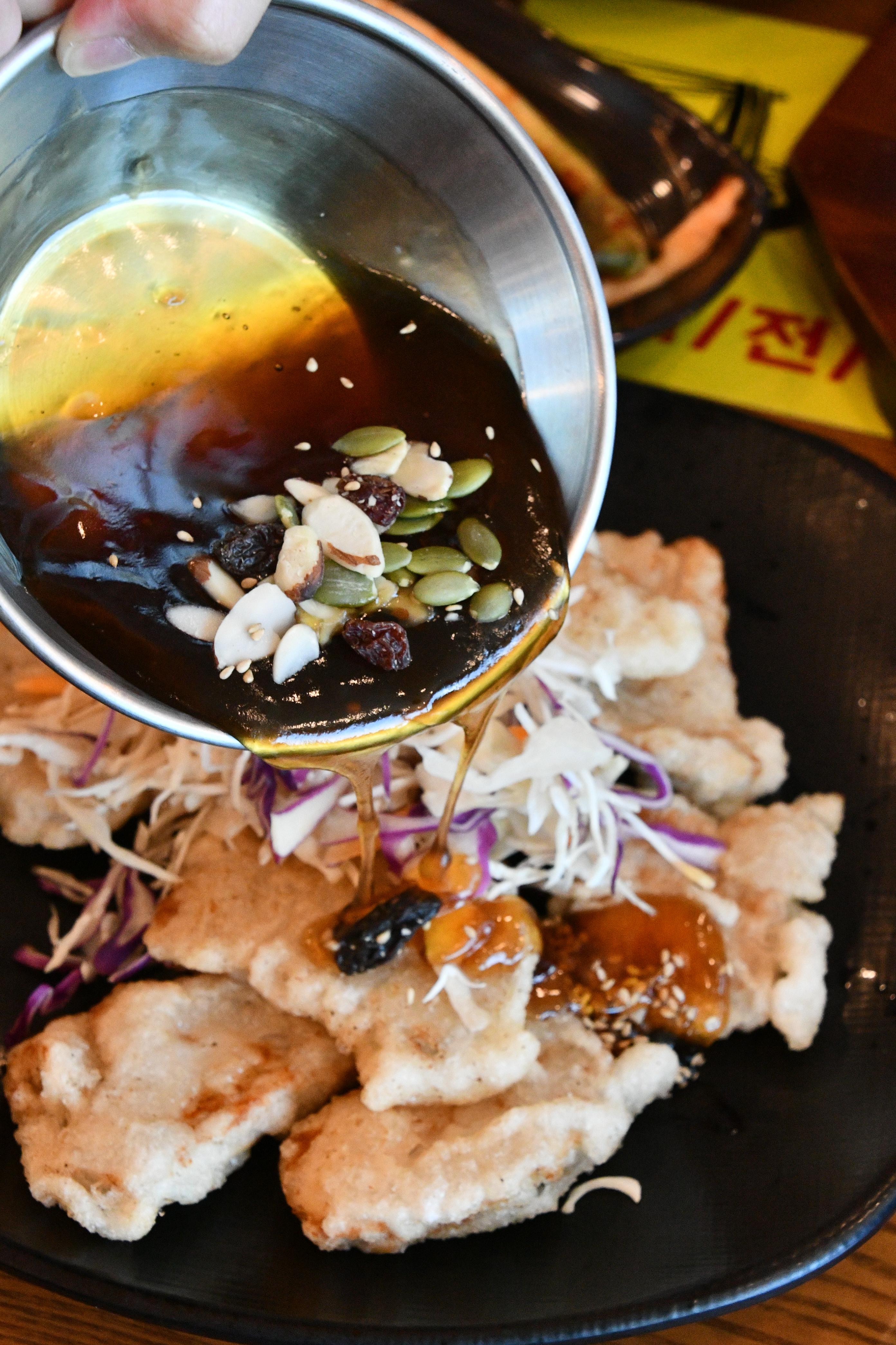 찹쌀탕수육은 기대 이상이었어요. 바삭함과 쫀득함이 공존하는 찹쌀옷 덕분에 식감이 훨씬 풍부했고, 고기 비중도 높아서 씹을수록 풍미가 살아납니다. 무엇보다 소스를 부어서 먹을지, 찍어서 먹을지 취향대로 선택할 수 있도록 따로 제공해주는 점도 마음에 들었어요.