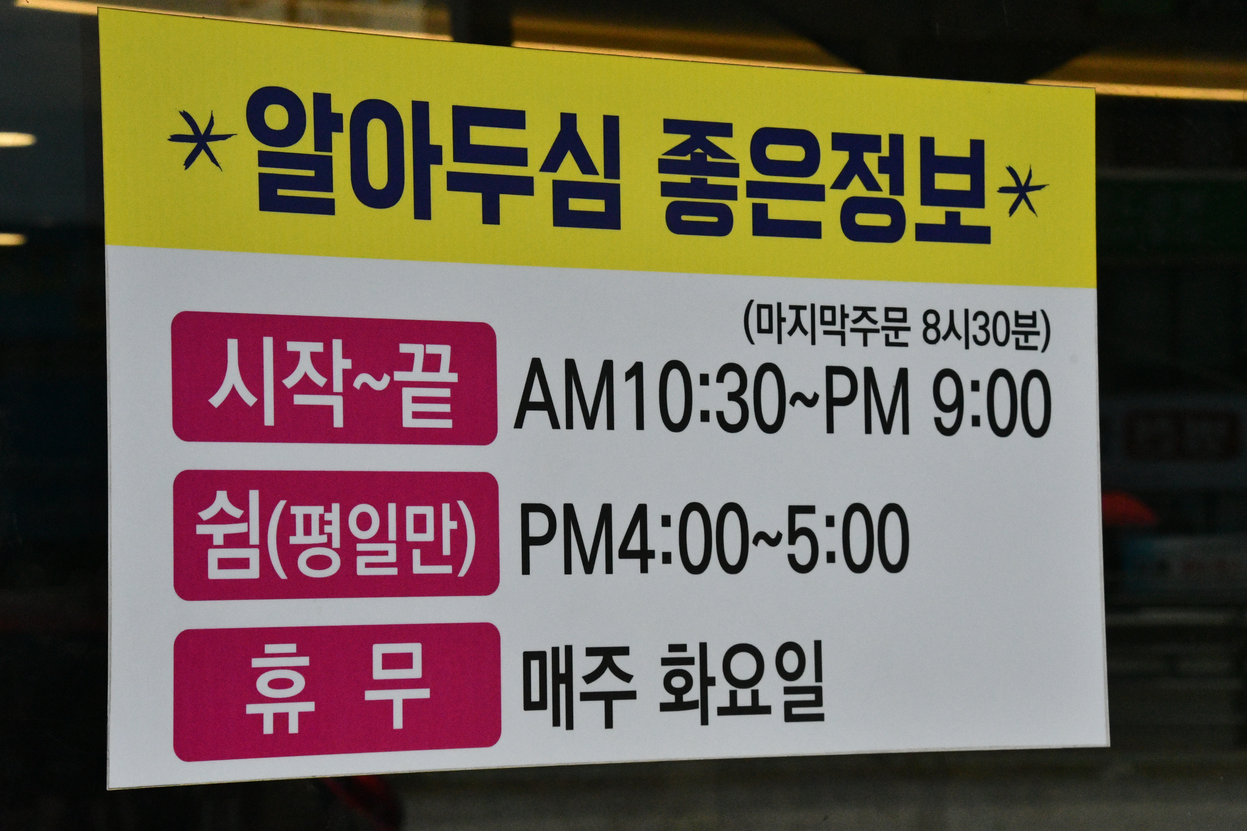 영업시간: 오전 10시 30분 ~ 오후 9시