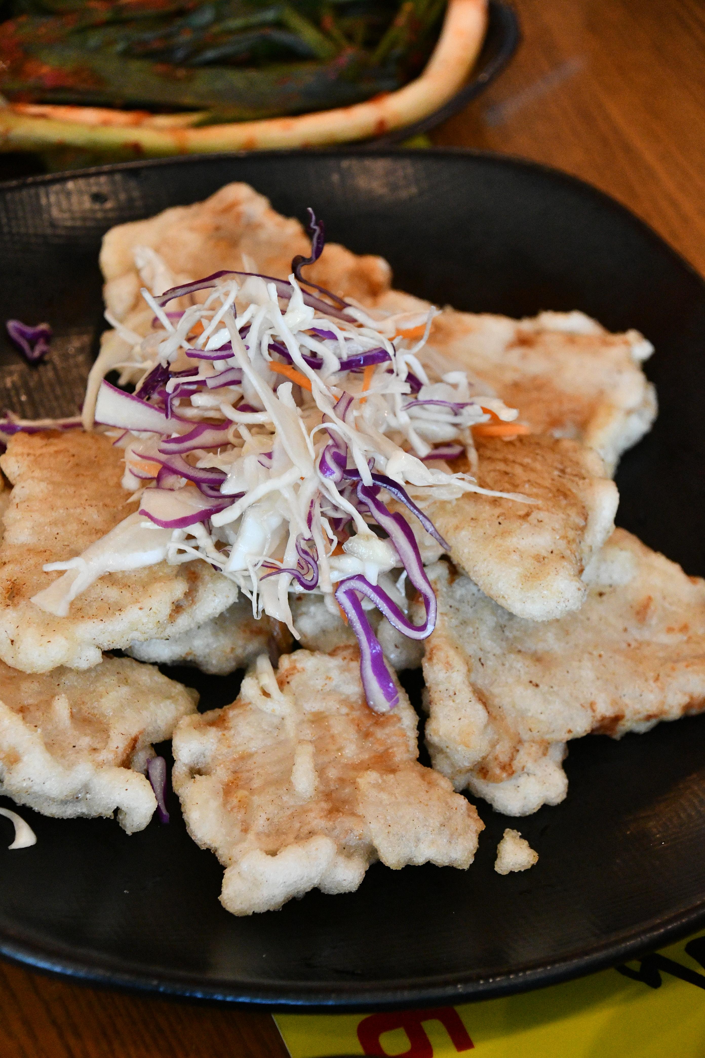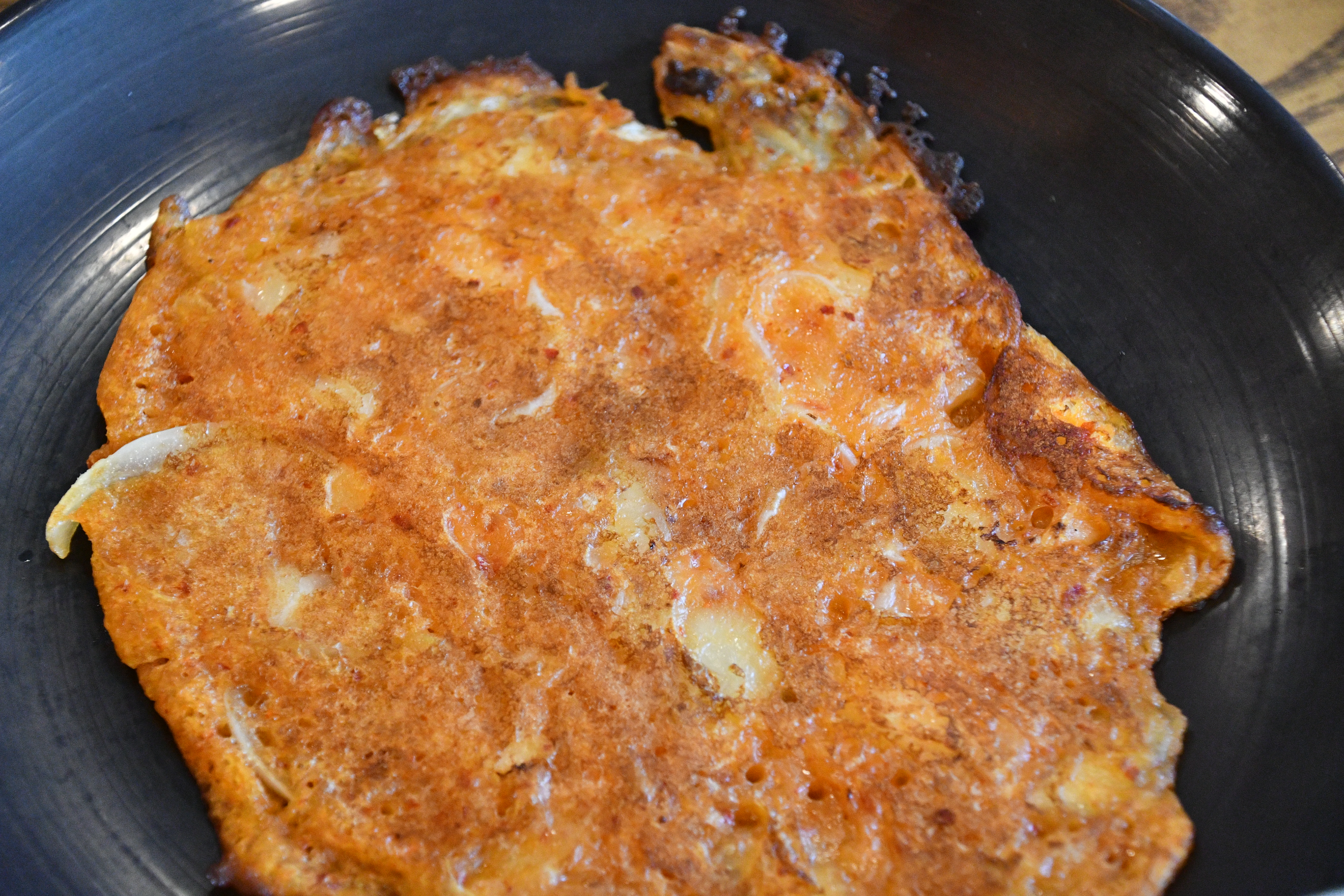 김치전은 테이블당 1장, 달걀후라이는 1인 1개씩 셀프바에서 가져올 수 있어요. 김치전은 노릇노릇 잘 구워져서 고소한 풍미가 살아 있고, 달걀후라이는 짜장면 위에 얹어 먹으면 궁합이 정말 기가 막힙니다.