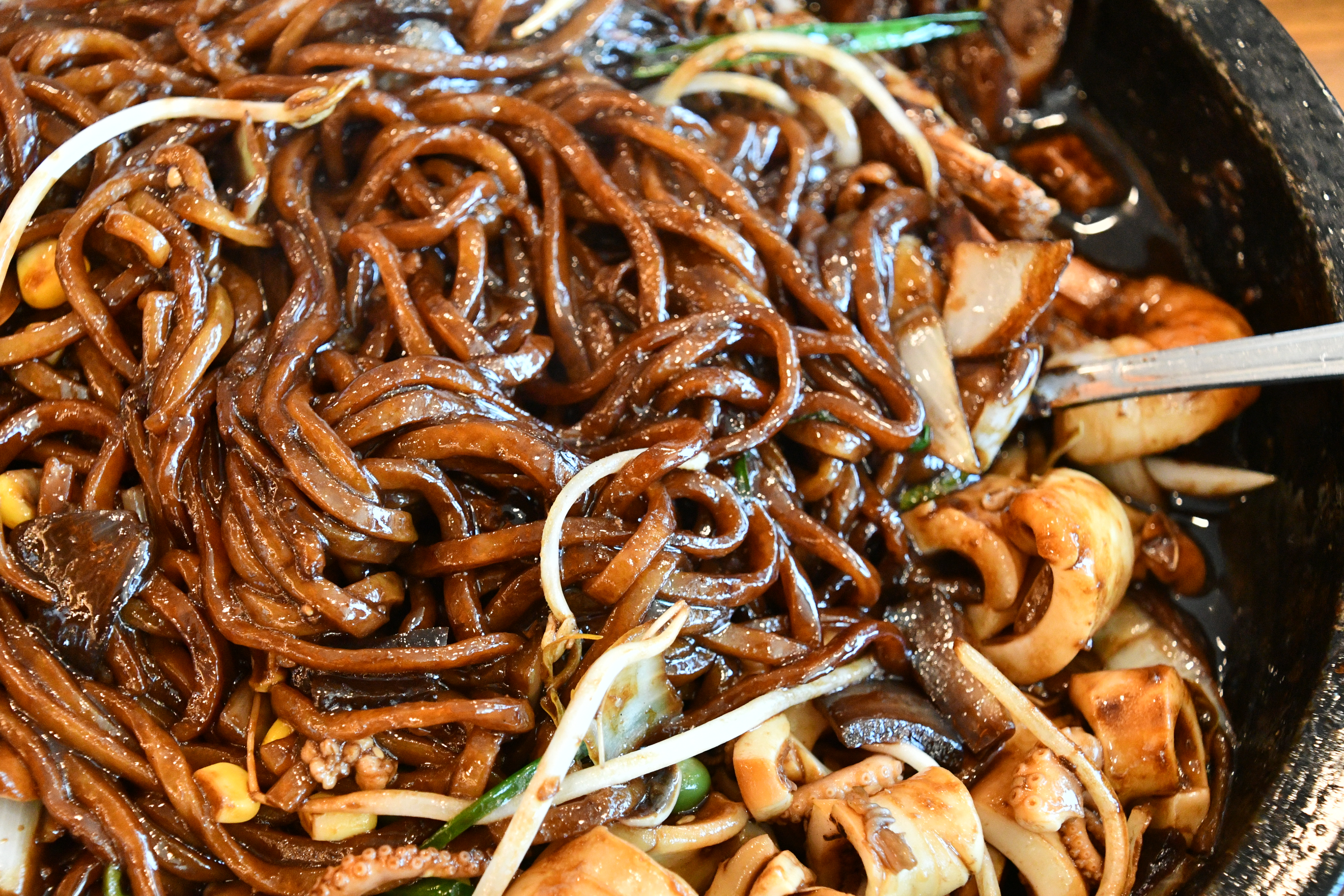 짜장 소스와 해산물에서 우러난 감칠맛이 만나서 입안이 정말 행복해지는 조합이에요. 면도 탱글하게 잘 삶아져 있어서 쫄깃쫄깃한 식감이 살아 있고, 돌판 덕분에 식사 끝까지 따뜻한 상태로 유지되는 점도 큰 장점이었습니다. 짜장면은 각자의 앞접시에 덜어 먹을 수 있어 나눠 먹기에도 좋았어요. 여기에 달걀후라이 얹어서 먹으니 말 그대로 ‘완전체’ 한 그릇!