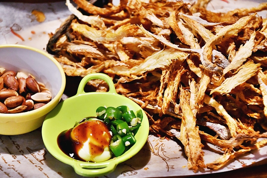 술은 소주와 막걸리가 잘 어울리며, 전통 주전자에 담겨 나오는 막걸리는 분위기를 더해줍니다. 막걸리 한 병과 함께 마른안주인 먹태도 주문했는데, 먹태는 손질이 잘 되어 있어 먹기 편했습니다. 곁들여 나온 땅콩과 소스와 함께라면 고소한 맛이 배가되어 술안주로 더할 나위 없었습니다. 이 외에도 다양한 전통주와 안주가 준비되어 있어 술과 함께 하는 즐거움을 배로 느낄 수 있습니다.