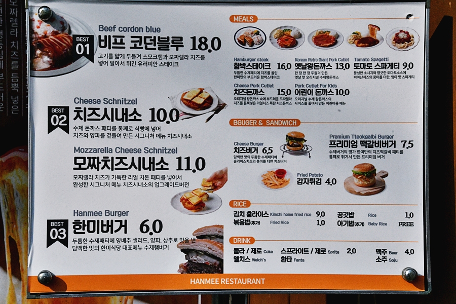 메뉴판을 펼치면 경양식의 정석 같은 라인업이 눈에 들어온다. 돈가스, 함박스테이크, 스파게티, 그리고 가장 눈에 띄는 칠곡 수제버거. 가격도 요즘 물가 생각하면 꽤 합리적인 편이라 부담이 없다. 주문 즉시 조리에 들어가서 음식이 나오기까지 시간이 조금 걸리지만, 오히려 그래서 더 기대가 된다. 미리 만들어 둔 느낌이 아니라는 점에서 이미 점수 추가.