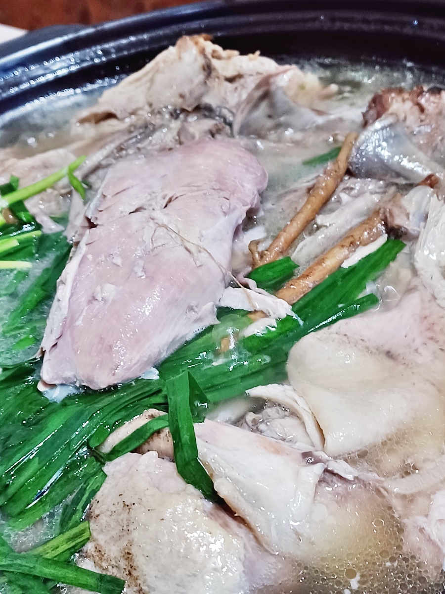 오리 백숙은 부추와 각종 한방 재료가 듬뿍 들어 있어 국물 맛이 깊고 깔끔했어요. 국물이 슴슴하면서도 감칠맛이 느껴져 소금 없이도 충분히 맛있게 즐길 수 있었습니다. 고기는 잡내 없이 부드럽고 쫄깃했으며, 한 덩이만 먹어도 배부를 정도로 양이 많았습니다.